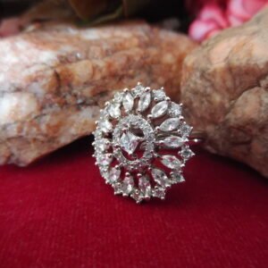 Oval Shape Floral Silver Plated Alloy AD Ring with Multiple White Stone9