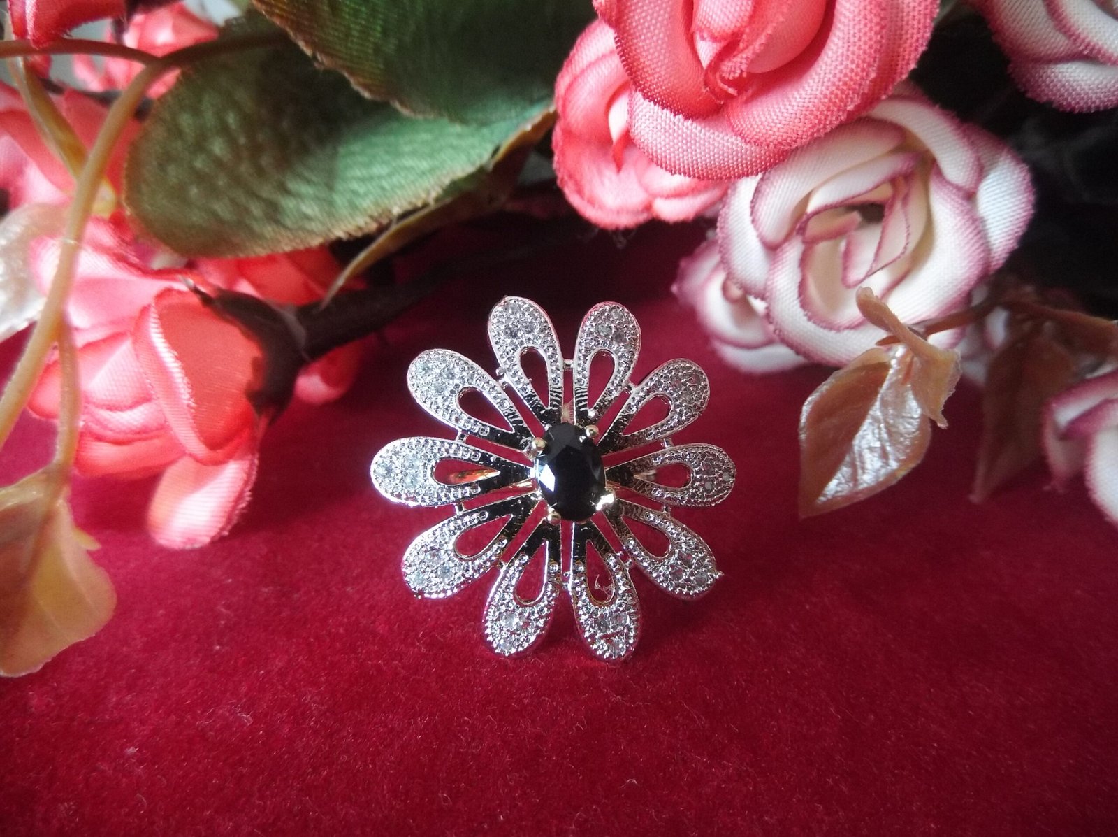 At the heart of each ring lies a mesmerizing black stone, adding a touch of depth and allure to the design. The sleek and lustrous silver matte metal beautifully complements the rich golden hue, enhancing the overall aesthetic appeal.