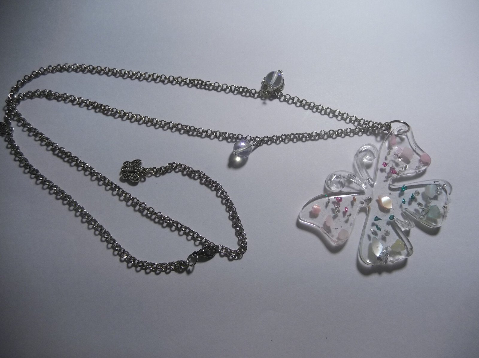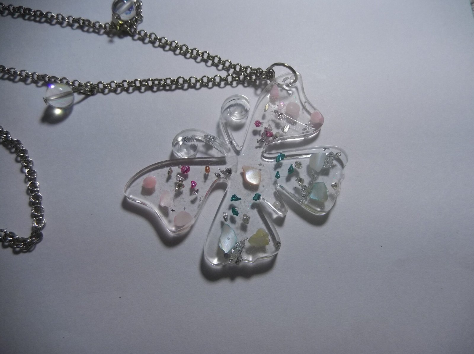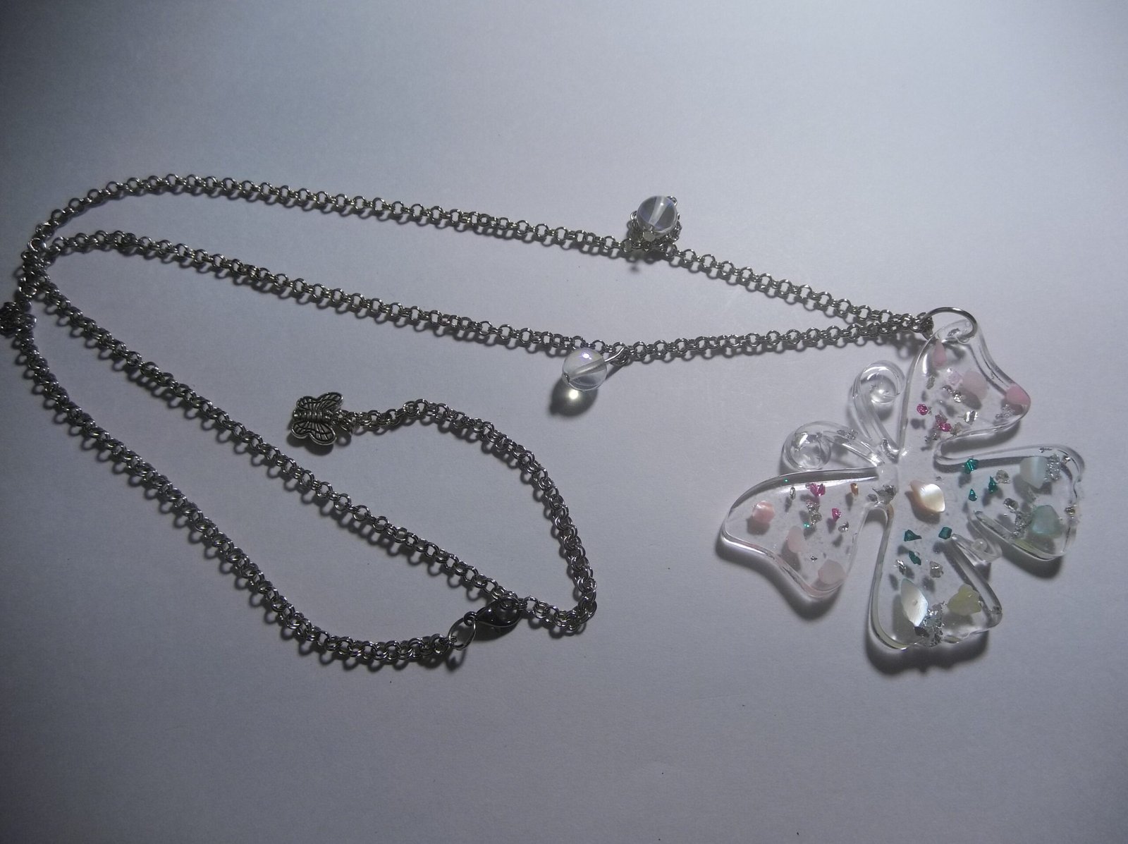 Beautiful Resin Transparent Butterfly Pendant Necklace with Silver Alloy Chain and Vibrant Aura Beads, Includes a Complementary Adjustable Beaded Bracelet, Unique Jewelry Set for Women, Perfect for Everyday Wear or Special Events