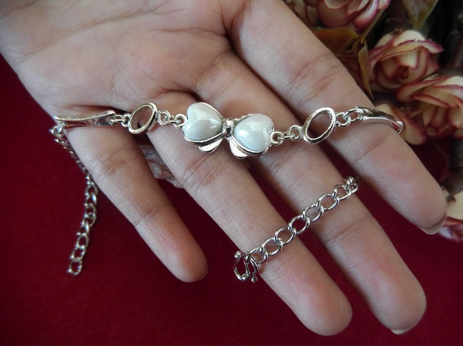Step into elegance with our Silver Metal Ladies Chain Bead Bracelet, a stunning accessory that adds sophistication to any ensemble. At its centerpiece lies a graceful metal bow, meticulously crafted to perfection and adorned with intricate detailing that exudes charm and grace. Each delicate curve and design element is accentuated by brilliant white stones, adding a touch of sparkle and brilliance to this exquisite piece. The white metal engravings further enhance its beauty, while both sides are adorned with shimmering white sparkling stones, ensuring that every angle catches the light for maximum impact. This bracelet is more than just jewelry; it’s a reflection of timeless beauty and refined taste. Elevate your style effortlessly with our Silver Metal Ladies Chain Bead Bracelet, a statement piece that captures the essence of elegance and femininity.
