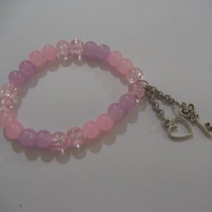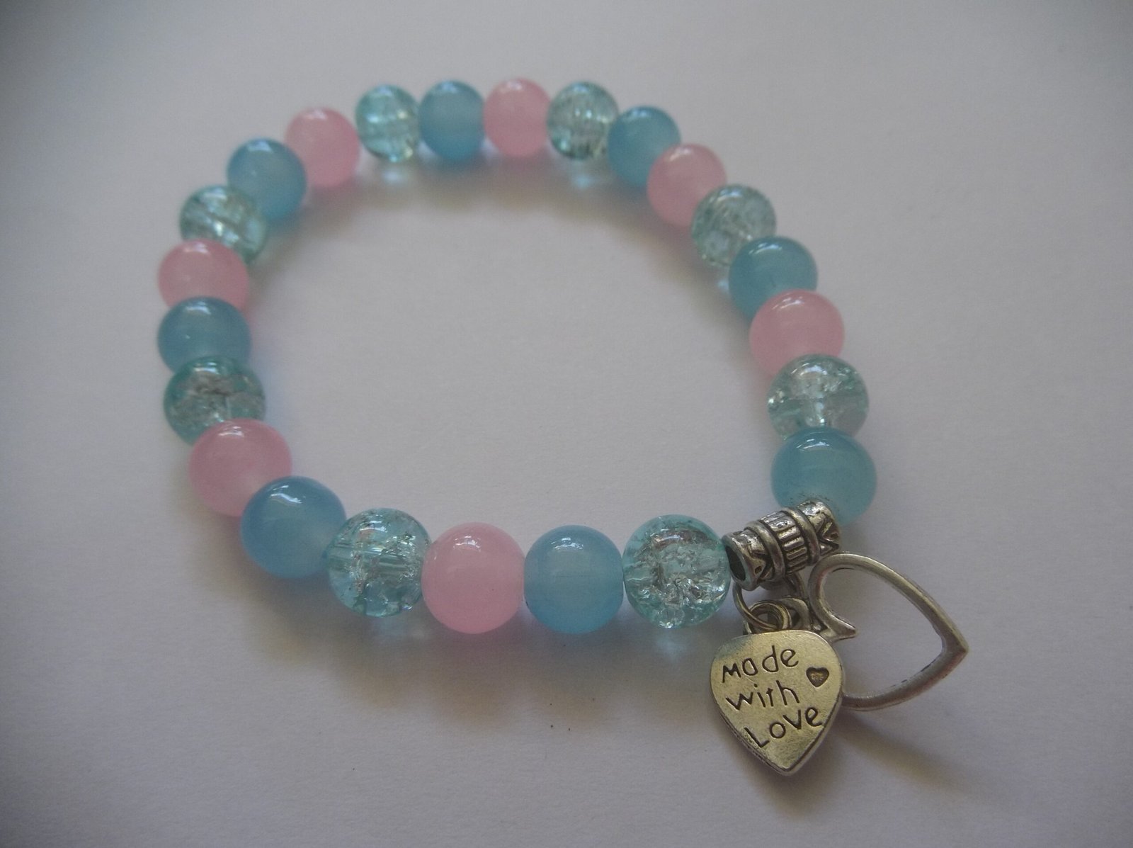 Stylish Accessory: Charming beaded bracelet featuring pink and blue beads with sparkling crystal accents.