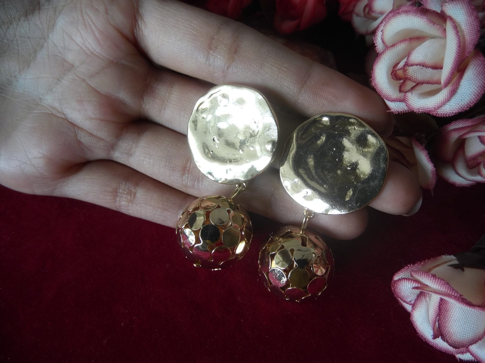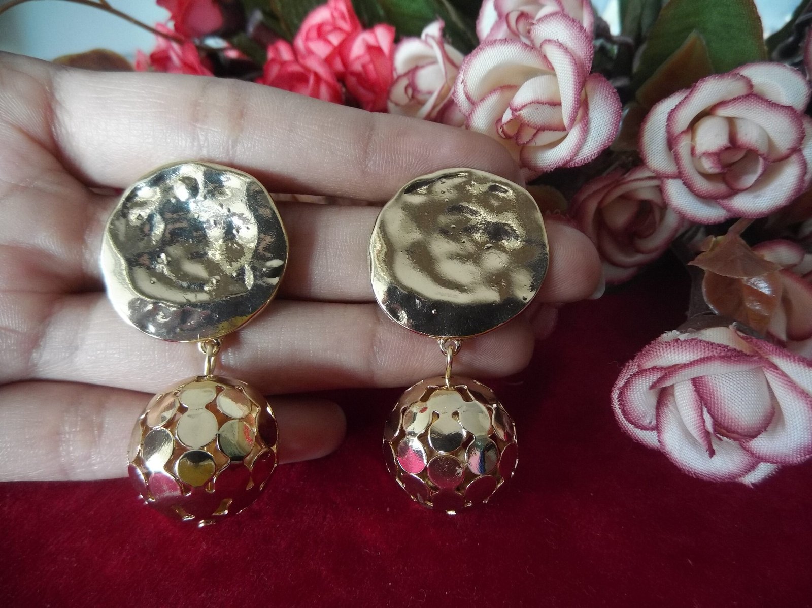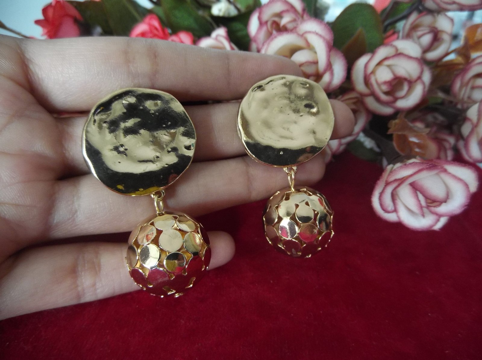 Step into elegance with our exquisite Golden Color Metal Earrings. Crafted with meticulous attention to detail, these earrings boast a stunning design that is sure to turn heads. Each earring features a golden matte cone base, adding a touch of sophistication to your ensemble. Hanging gracefully from the base is a sizable golden metal ball, accentuating the earrings’ allure. Completing the look, a charming coin dangles from the ball, adding a unique and playful element to these earrings. Elevate your style and make a statement with these beautifully crafted earrings that effortlessly blend glamour and charm.