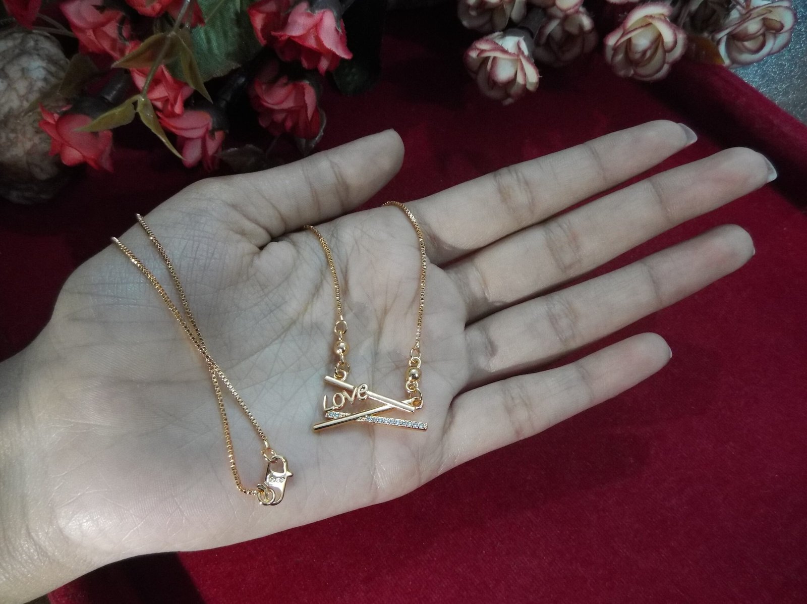Elevate your elegance with our exquisite Ladies Golden Chain with Pendant, a radiant symbol of love and sophistication. Crafted with precision, this stunning chain features a delicately designed pendant adorned with sparkling stones that capture the light with every movement. Adding to its charm, the pendant boasts a beautifully written “love” word, adding a touch of sentimentality to this already enchanting piece. Whether worn as a statement accessory or as a meaningful gift for someone special, this golden chain with pendant is sure to become a cherished addition to any jewelry collection.