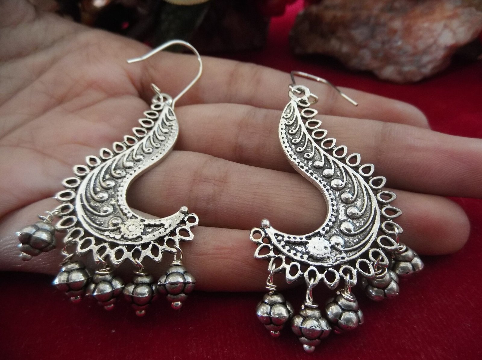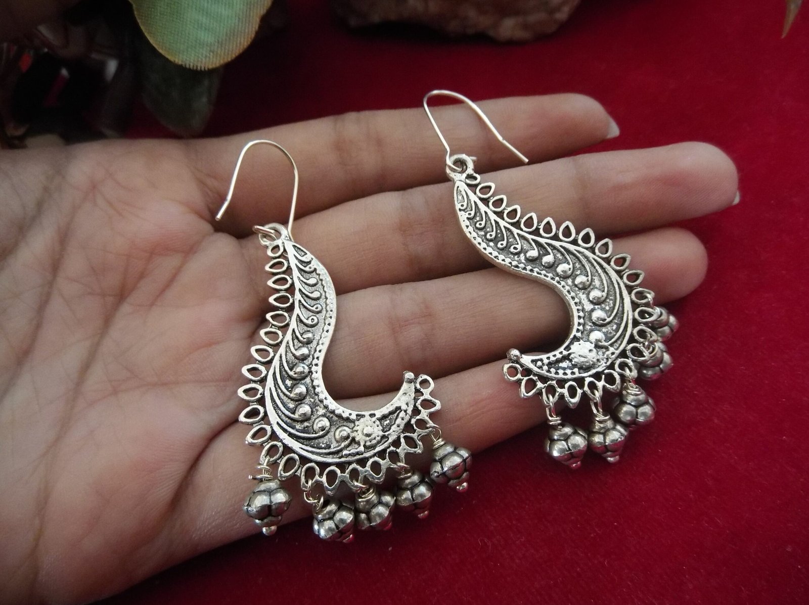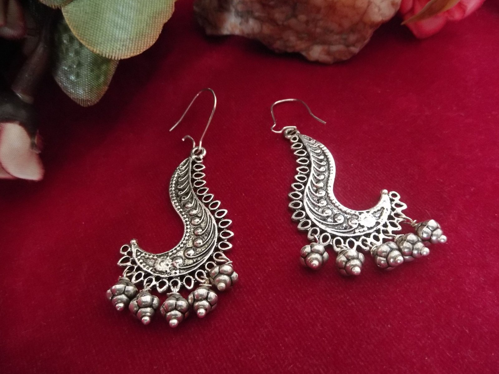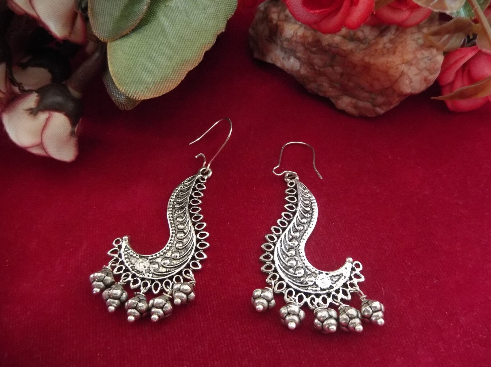 Elevate your elegance with our Silver Color Oxidized Hanging Earrings adorned with delicate metallic balls