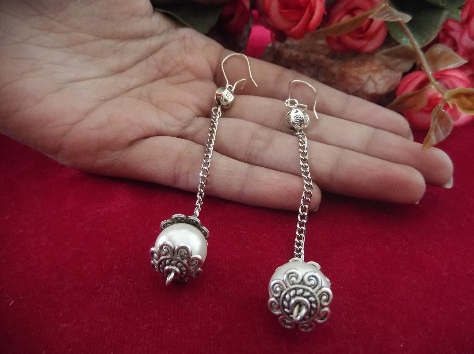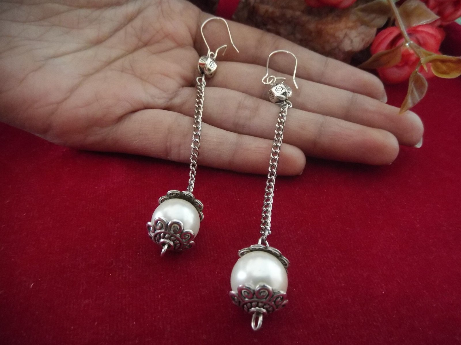 Elevate your ensemble with our Silver Color Oxidized Hanging Earrings, featuring stunning oversized pearls that add a touch of sophistication and glamour to any look.