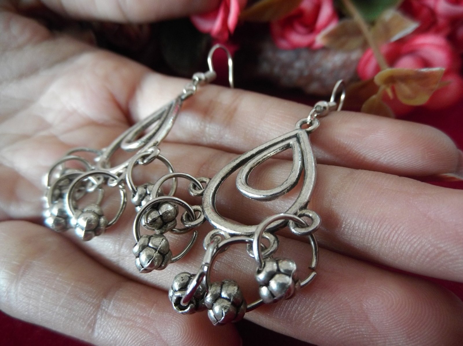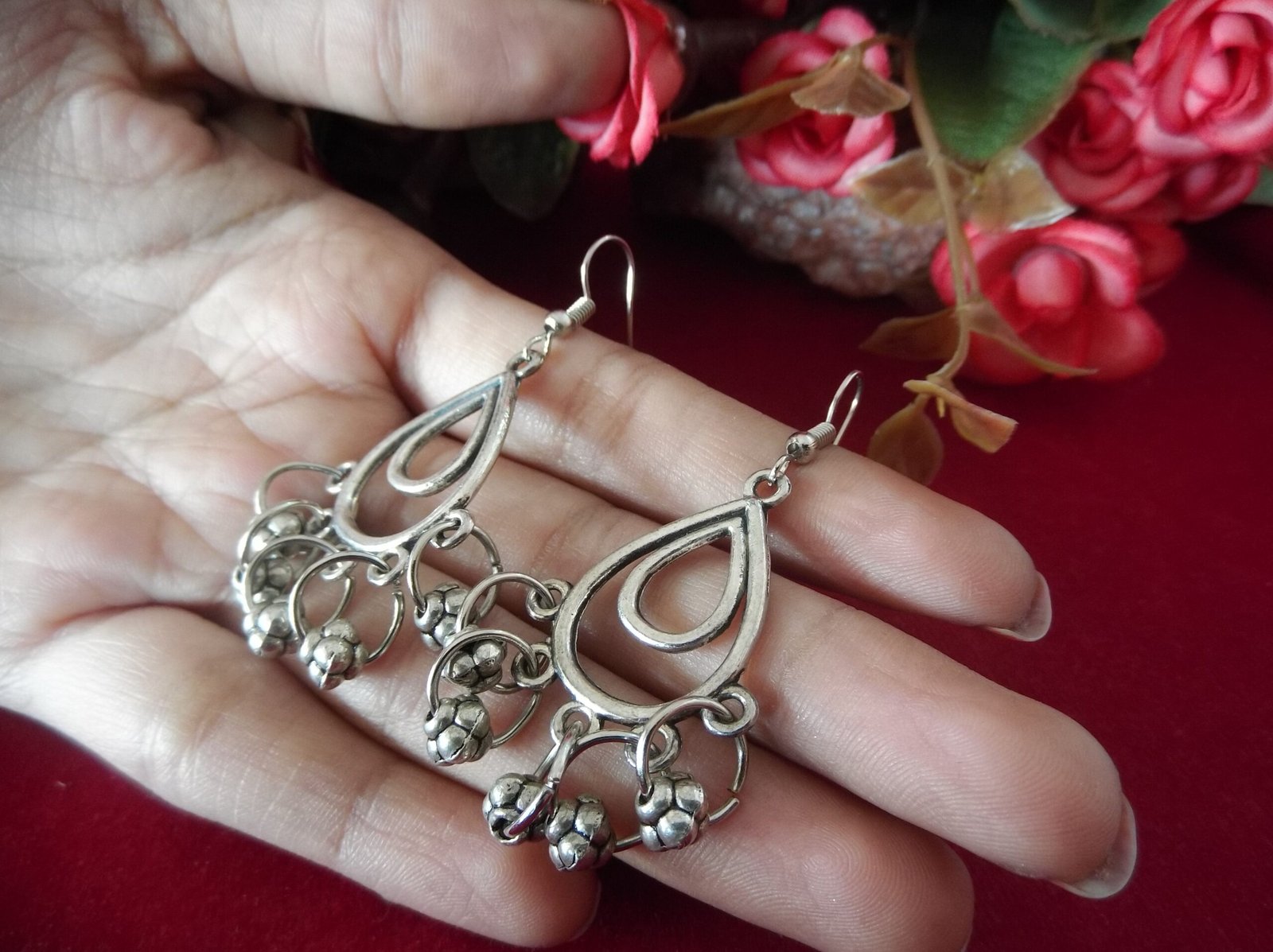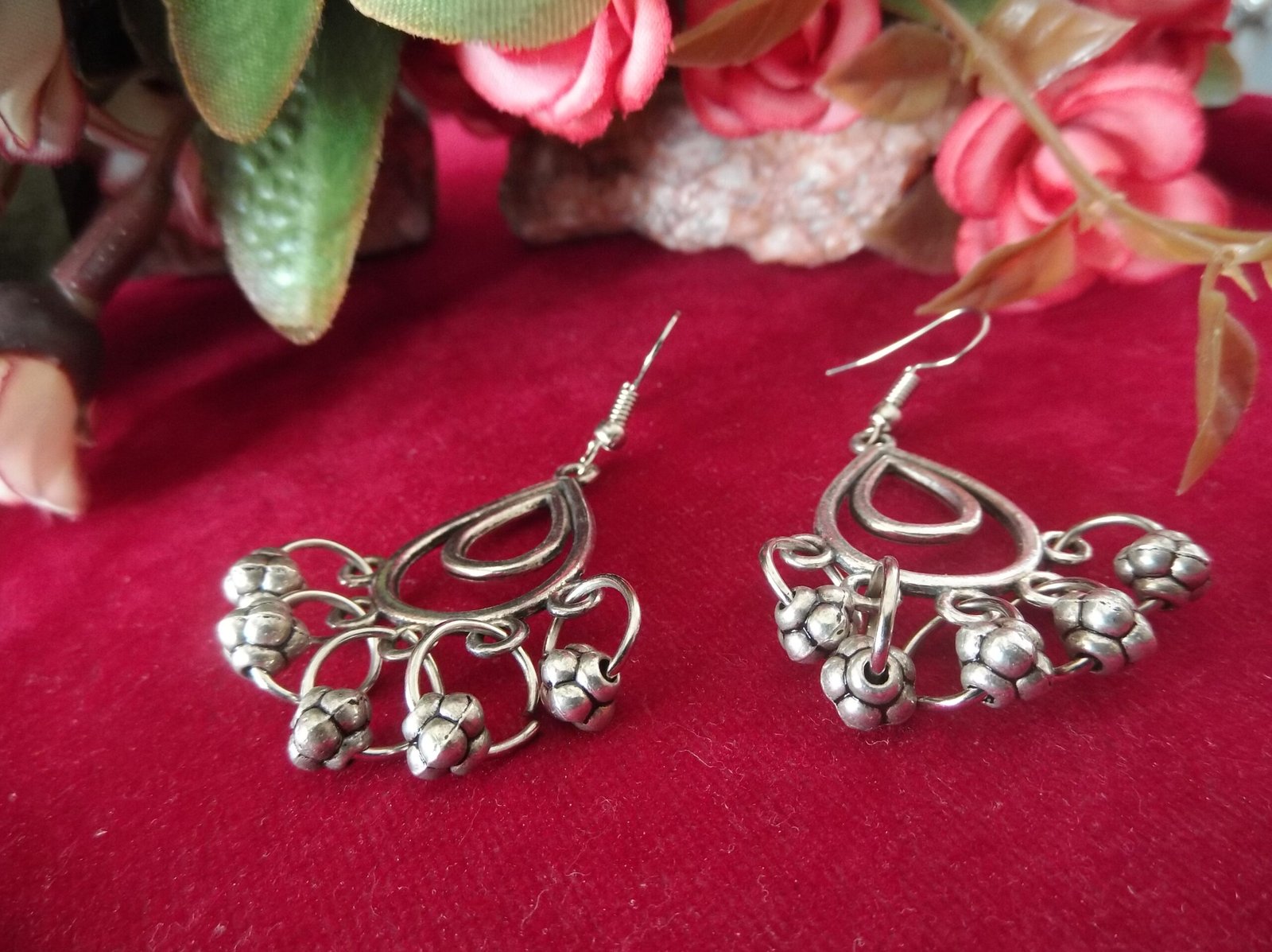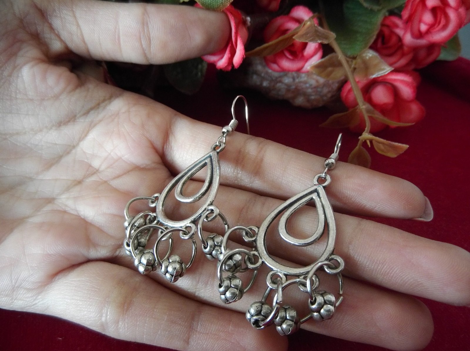 Silver Color Oxidized Hanging Earrings with metallic balls and small rings