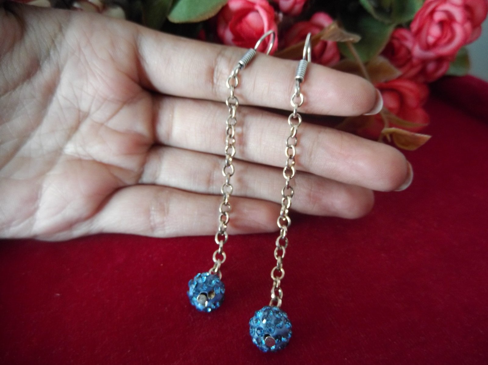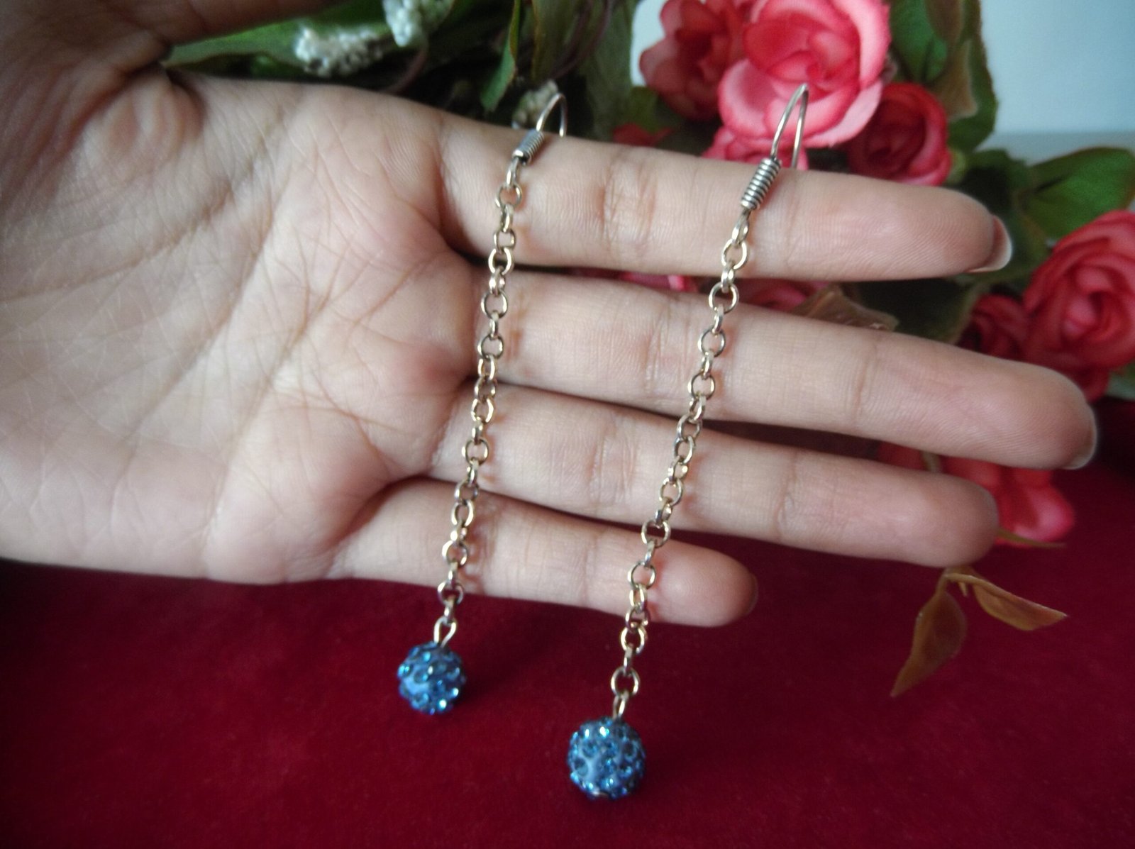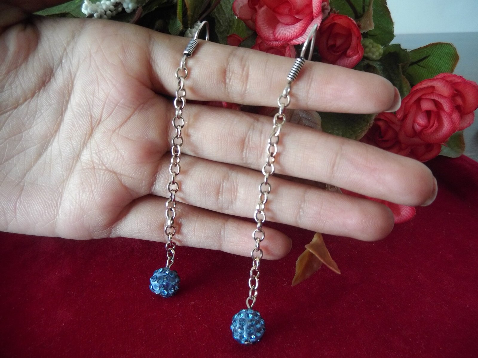 Elevate your ensemble with our Silver Color Oxidized Hanging Chain Earrings, adorned with mesmerizing blue sparkling balls that add a touch of glamour to your look. Make a statement with sophistication.