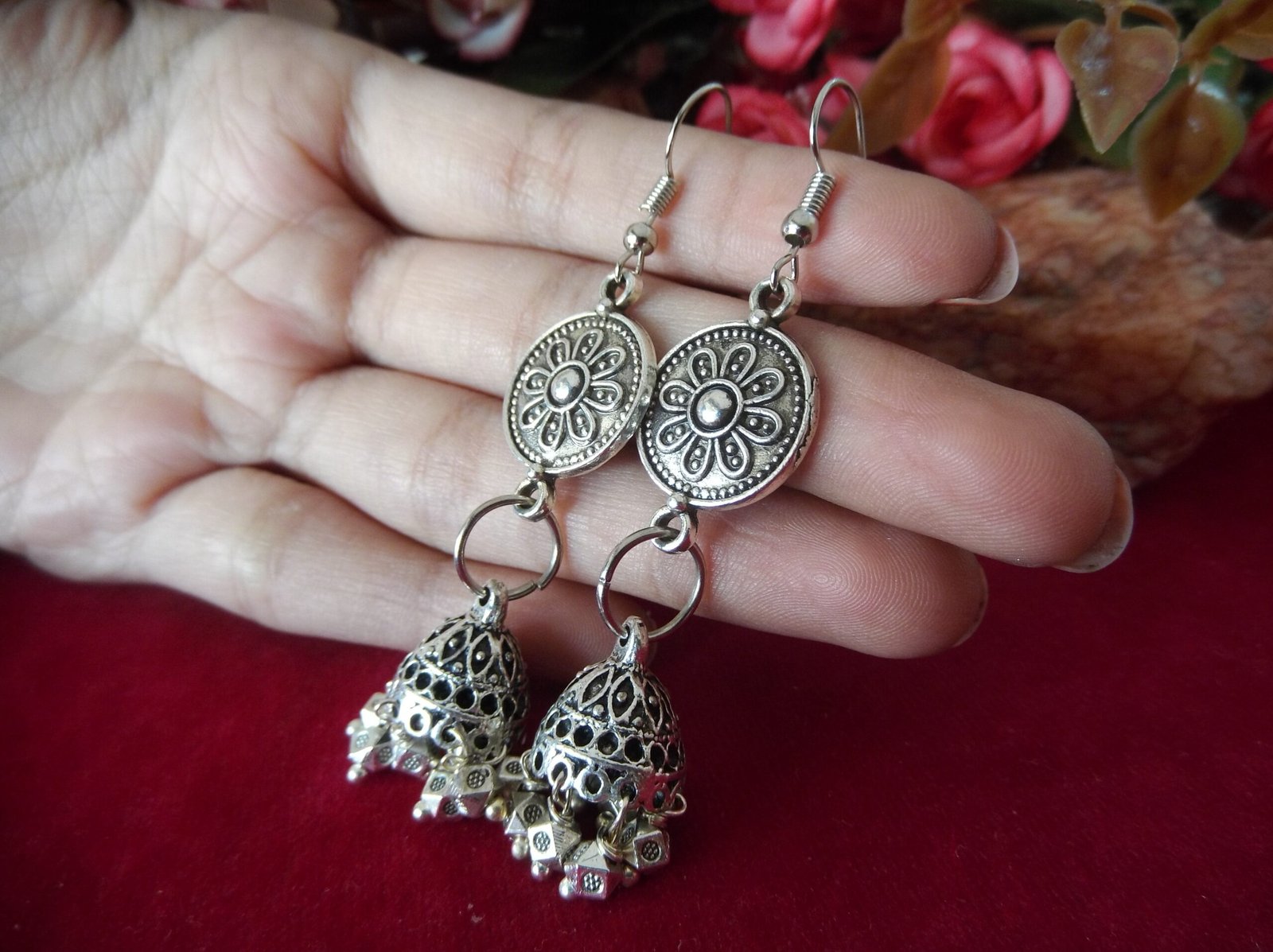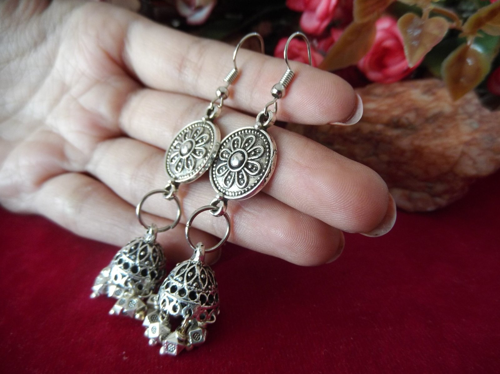 Elevate your elegance with our Silver Color Oxidized Hanging Earrings