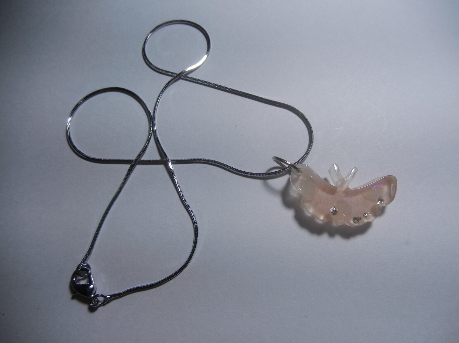 Radiant Peach Hue: This resin butterfly pendant features a captivating peach color with a glossy finish, adding a touch of elegance to any outfit.