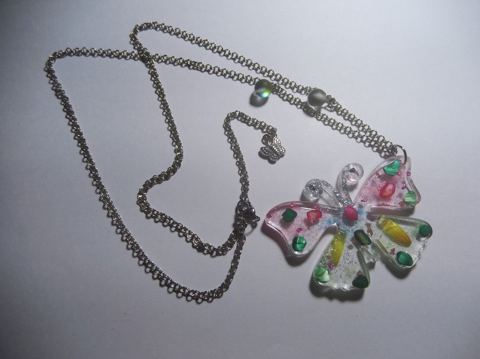 Resin Transparent Butterfly Pendant with Colorful Aura Beads Necklace, Includes a Complementary Adjustable Beaded Bracelet, Unique Whimsical Jewelry for Women, Perfect for Any Occasion