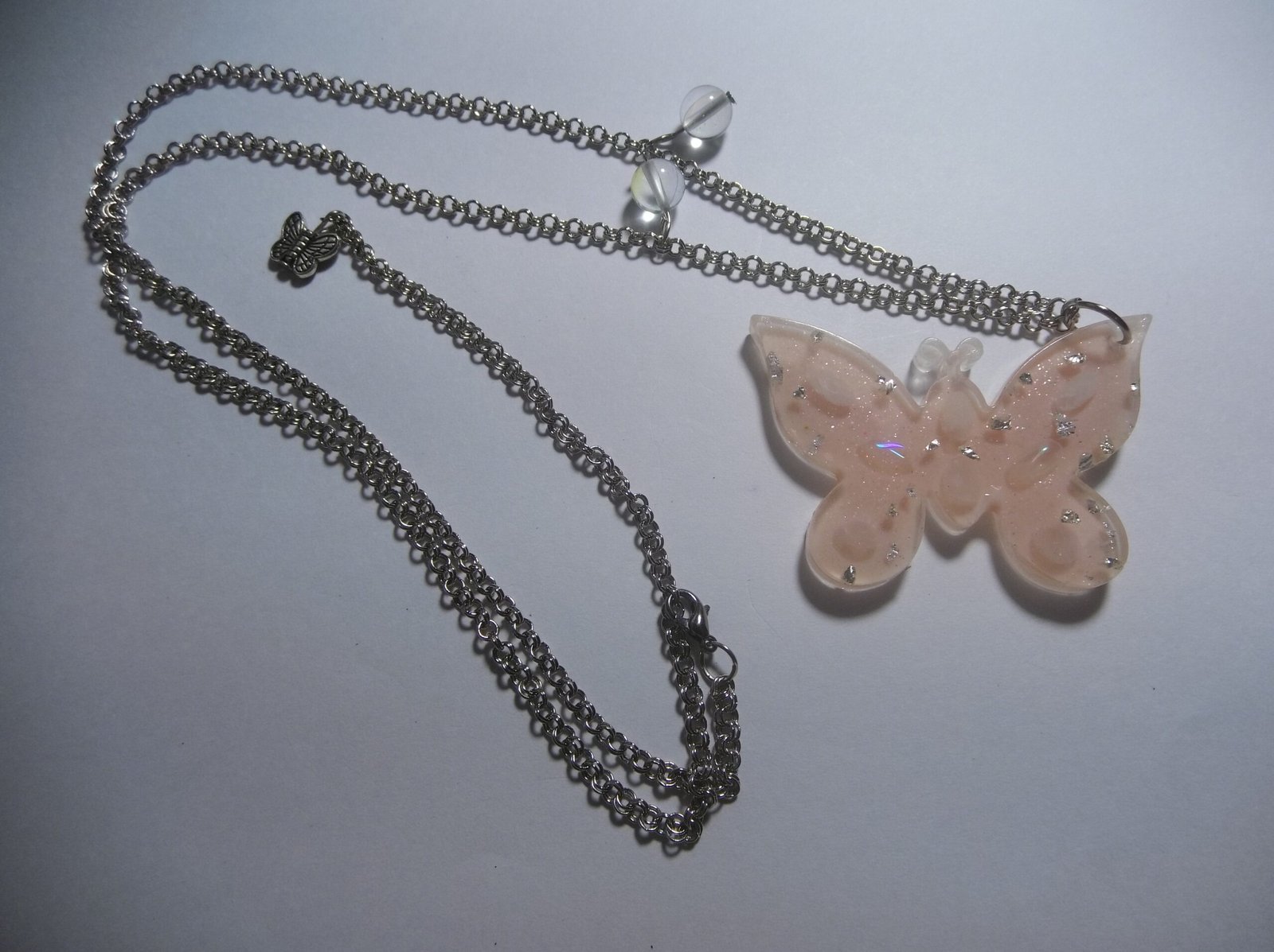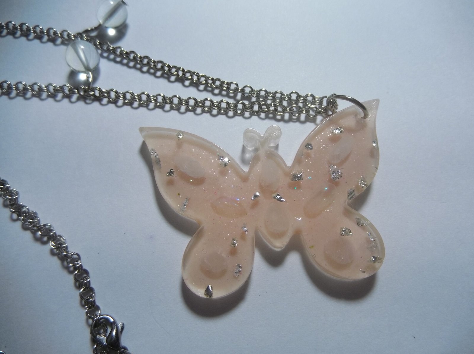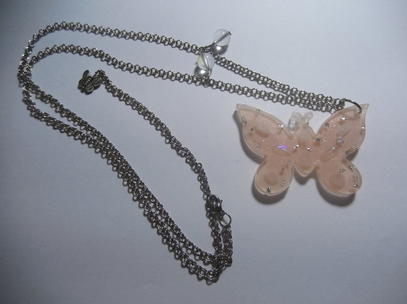 Stunning Resin Peach Butterfly Pendant with Aura Beads on a Silver Alloy Chain, Includes a Complementary Adjustable Beaded Bracelet, Perfect for Women’s Everyday Wear or Special Occasions, Ideal Gift for Yourself or a Loved One