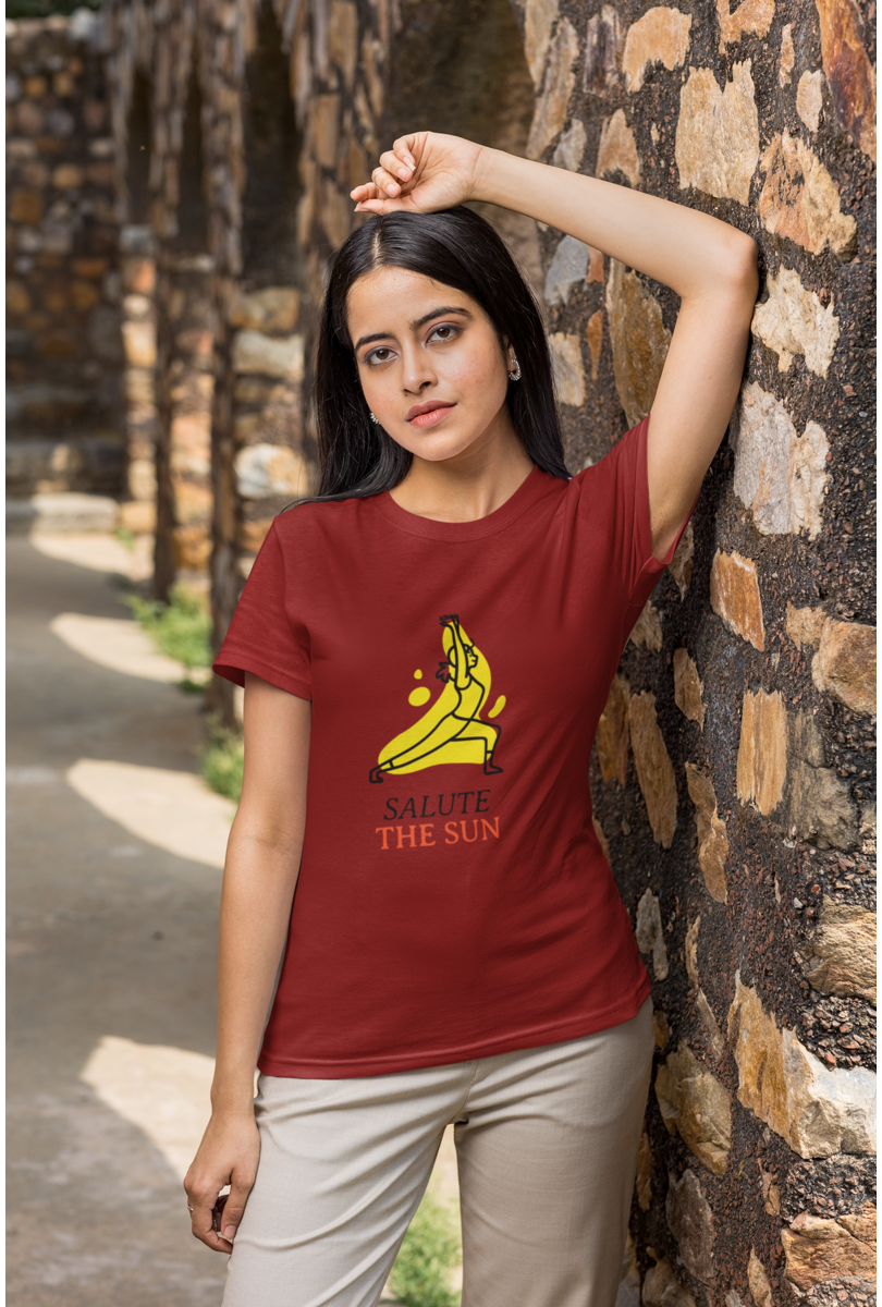 Women Round Neck Maroon Yoga T-Shirt – Salute The Sun