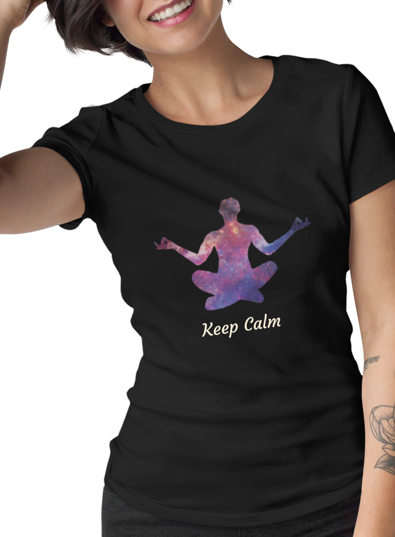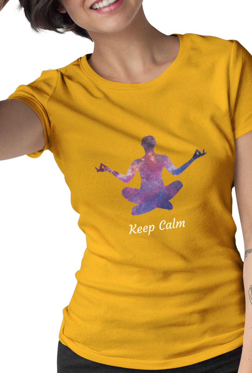 Be the first to review “Women Round Neck Yoga White T-Shirt – Keep Calm”