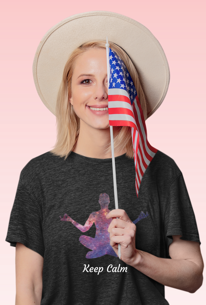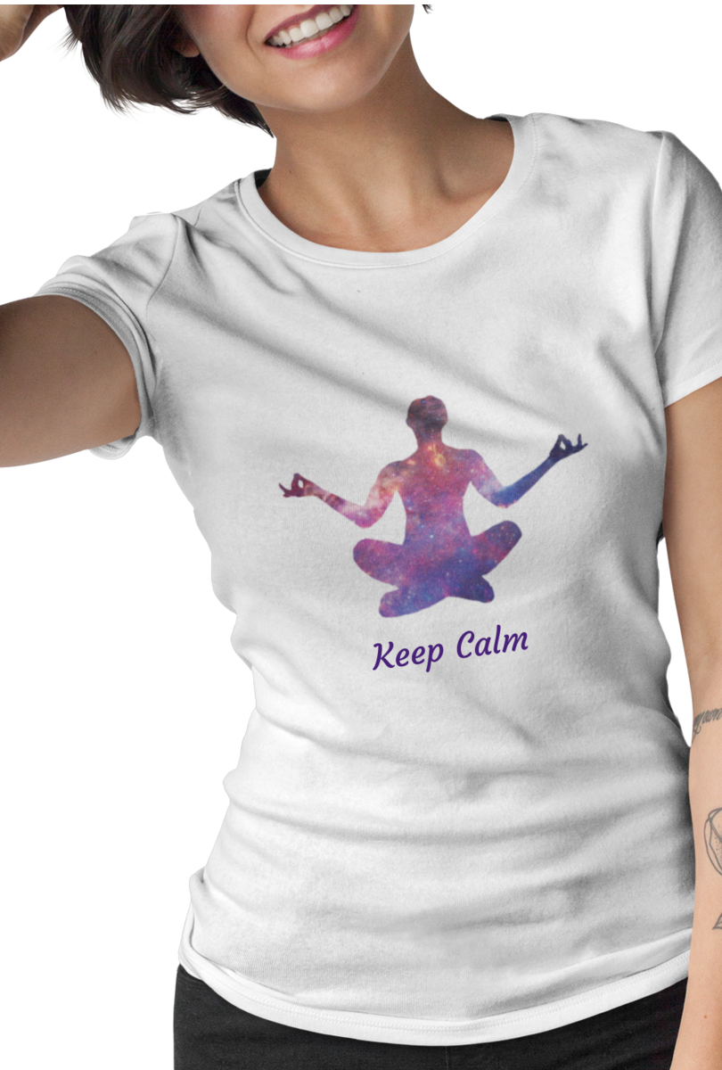 Women Round Neck Yoga White T-Shirt – Keep Calm