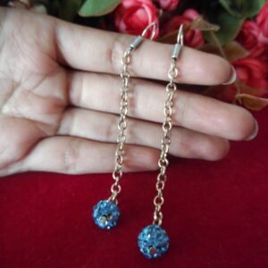 Silver Color Oxidized Hanging Chain Earrings with mesmerizing blue sparkling balls