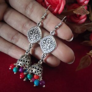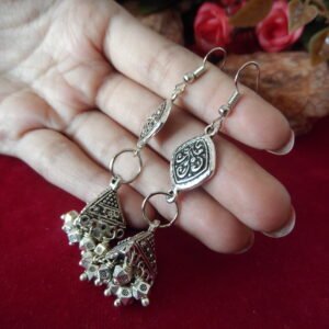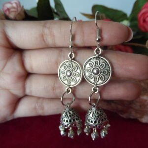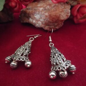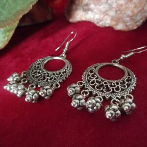 Silver Color Oxidized Hanging Earrings with delicate metallic balls