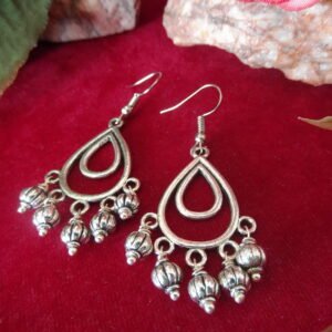 Silver Color Oxidized Hanging Earrings with delicate metallic balls