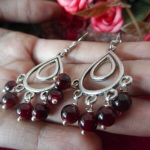 Silver Oxidized Hanging Earrings with blackish maroon beads