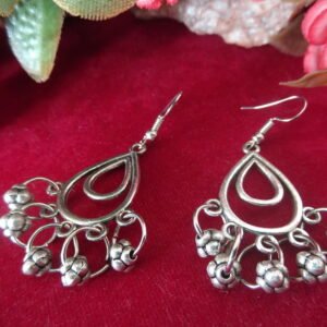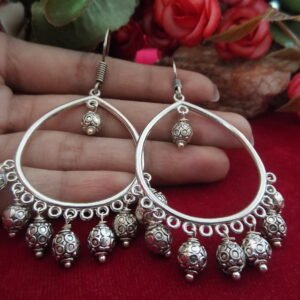 Silver Color Oxidized Hanging Earrings with metallic balls