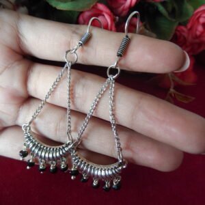 Silver Color Oxidized Hanging Earrings with small black crystal beads