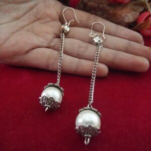 Silver Color Oxidized Hanging Earrings with stunning oversized pearls