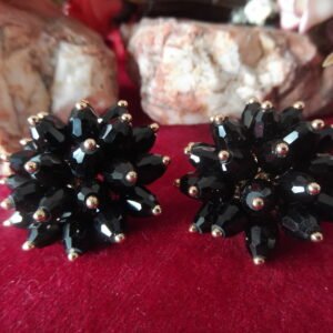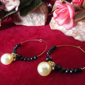 Golden Bali Earrings with sleek black crystal beads and a hanging pearl
