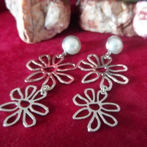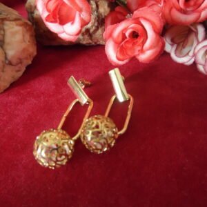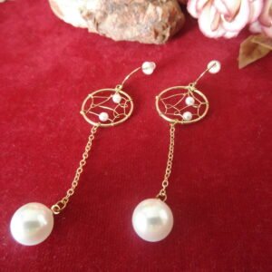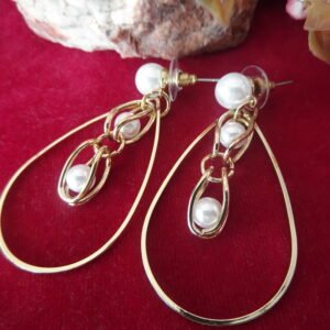 Gold Plated Alloy Golden Oval Hanging with Pearl Drop Earring