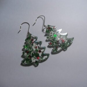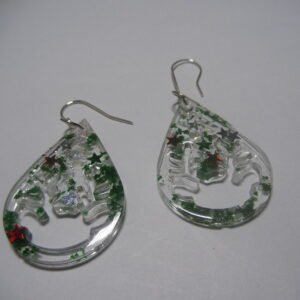 Festive Christmas-Themed Resin Earrings with Elegant Hooks, Includes a Complimentary Adjustable Beaded Bracelet – Perfect Holiday Jewelry for Women, Ideal for Parties and Gifting
